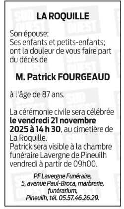 Fallecido en Sainte-Foy-la-Grande (33220, Francia) el domingo, 16 de noviembre de 2025 a la edad de 87 años