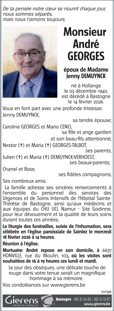 Décédé à Bastogne (6600, Belgique) le samedi 14 février 2026 à l'âge de 85 ans