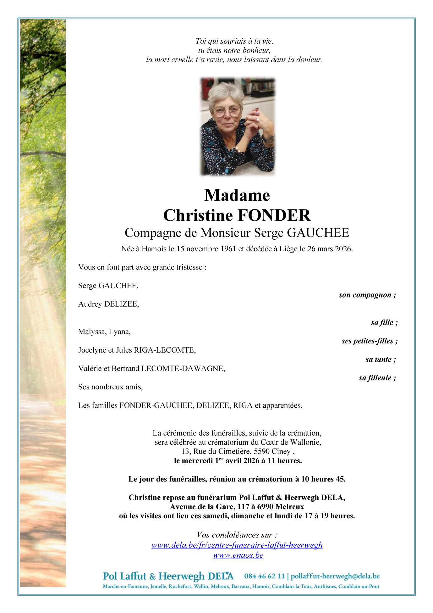 Fallecida en Liège (4000, Bélgica) el jueves, 26 de marzo de 2026 a la edad de 64 años