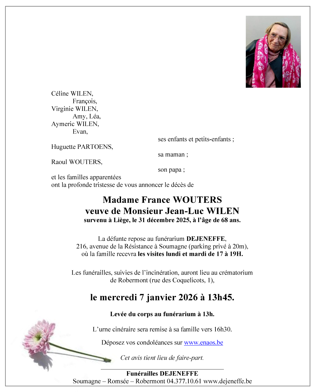 Overleden te Liège (4000, België) op woensdag 31 december 2025 op 68-jarige leeftijd