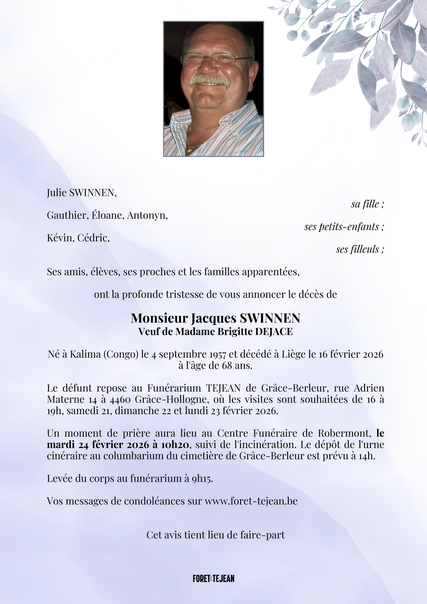 Décédé à Liège (4000, Belgique) le lundi 16 février 2026 à l'âge de 68 ans