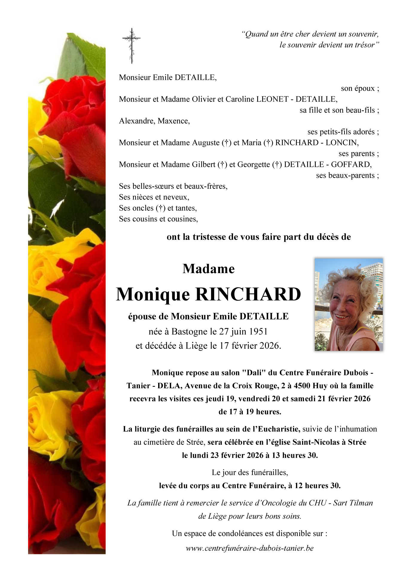 Décédée à Strée (4577, Belgique) le mardi 17 février 2026 à l'âge de 74 ans