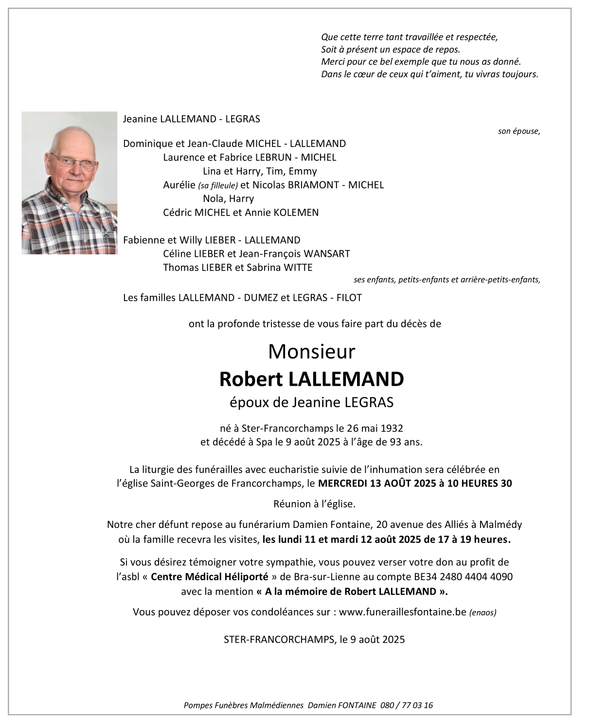 Fallecido en Spa (4900, Bélgica) el sábado, 9 de agosto de 2025 a la edad de 93 años