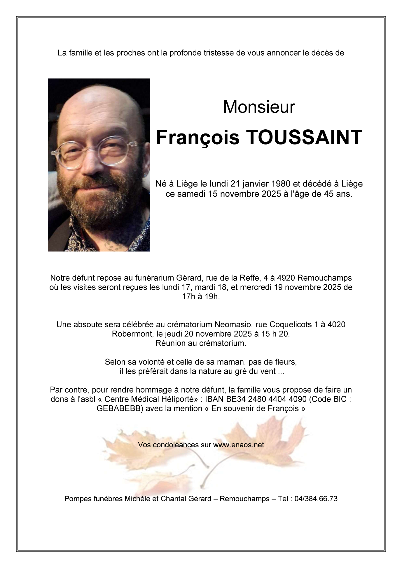Overleden te Liège (4000, België) op zaterdag 15 november 2025 op 45-jarige leeftijd