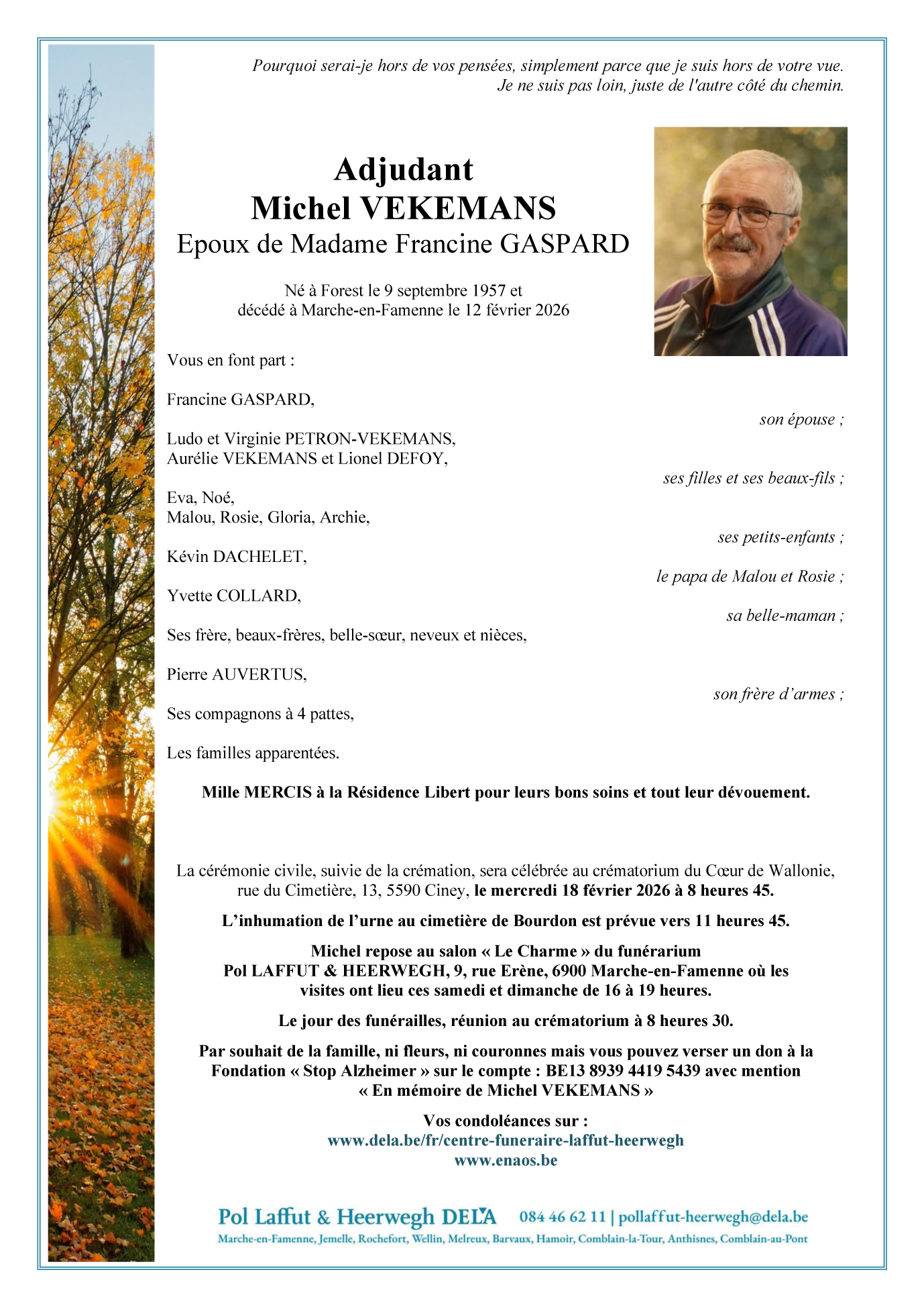 Décédé à Marche-en-Famenne (6900, Belgique) le jeudi 12 février 2026 à l'âge de 68 ans