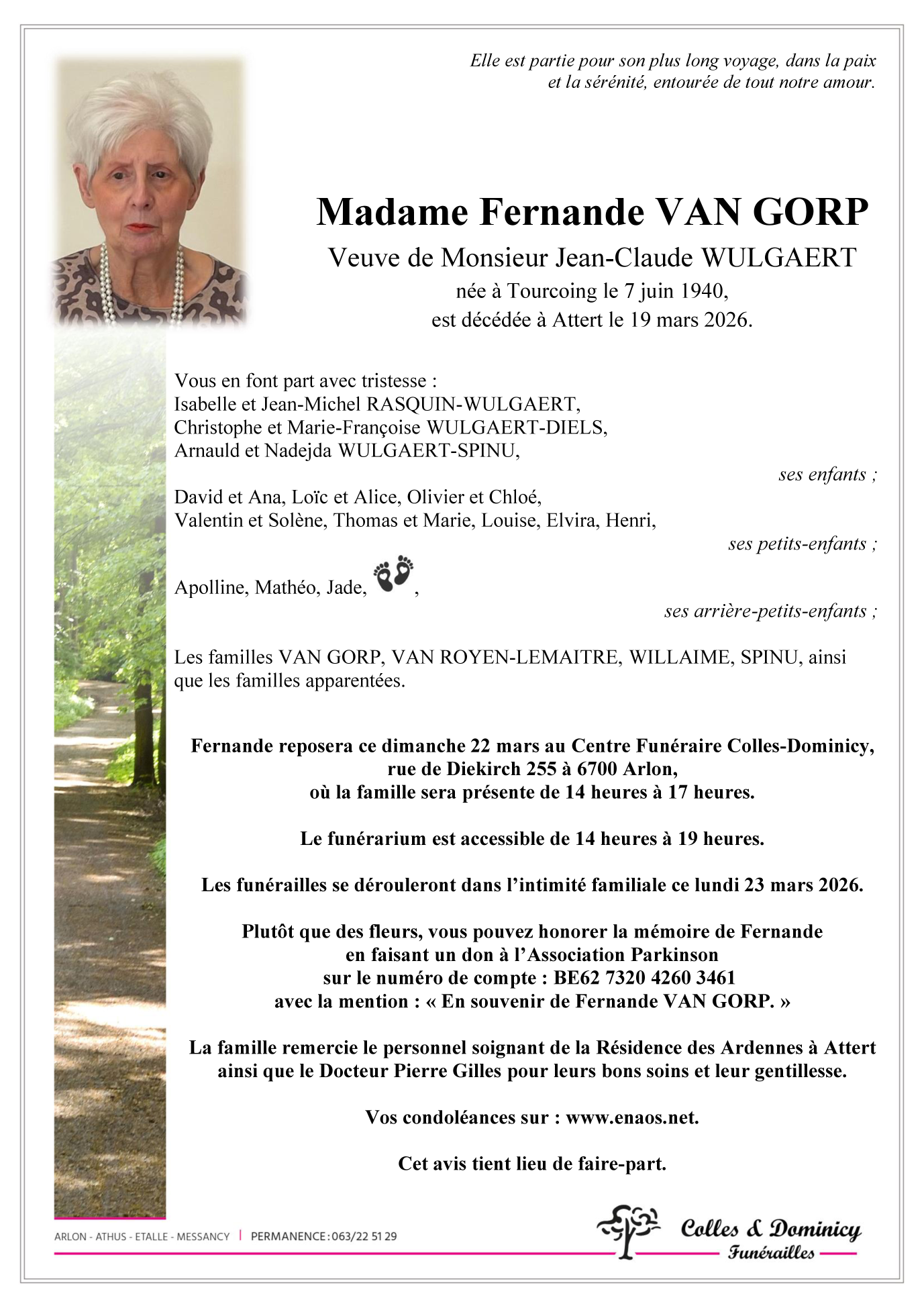 Died in Attert (6717, Belgium) on 19 March 2026 at the age of 85 years