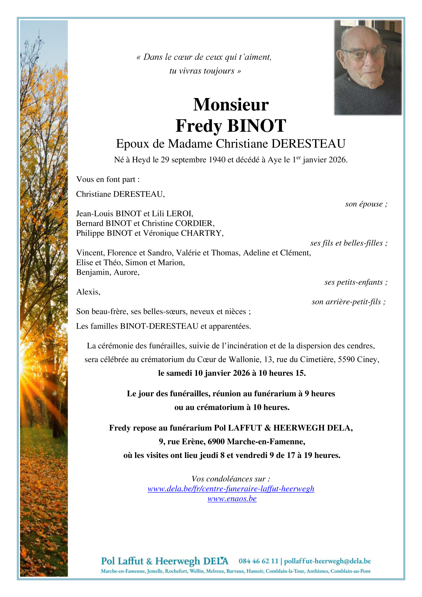 Décédé à Aye (6900, Belgique) le jeudi 1 janvier 2026 à l'âge de 85 ans