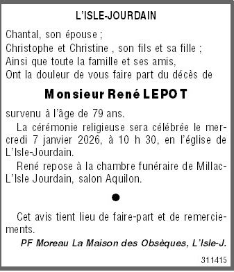 Décédé à L'Isle-Jourdain (86150, France) le mercredi 31 décembre 2025 à l'âge de 79 ans