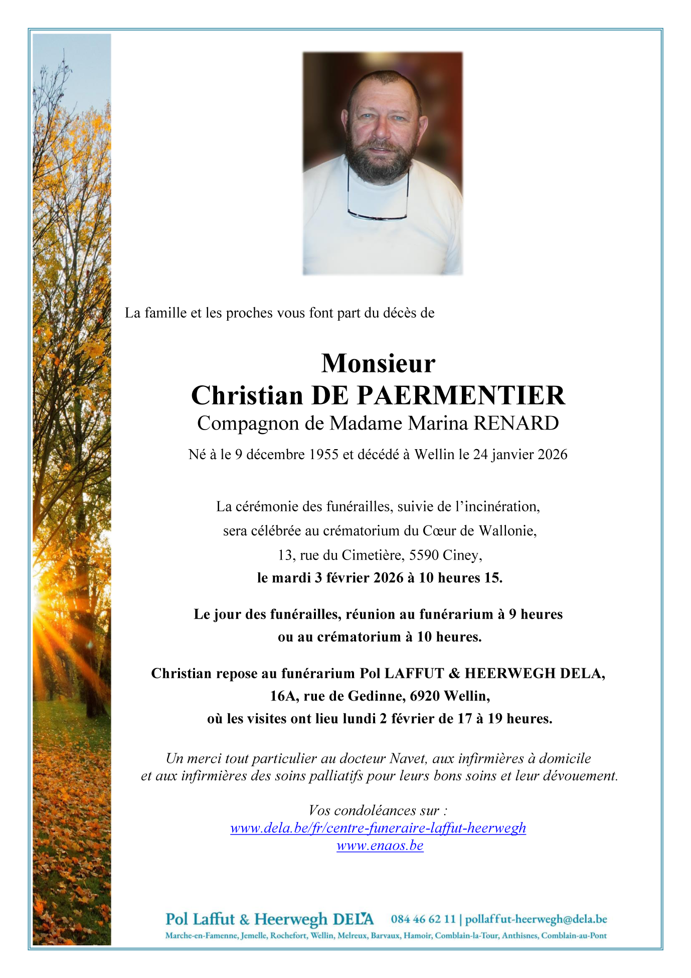Décédé à Wellin (6920, Belgique) le samedi 24 janvier 2026 à l'âge de 70 ans
