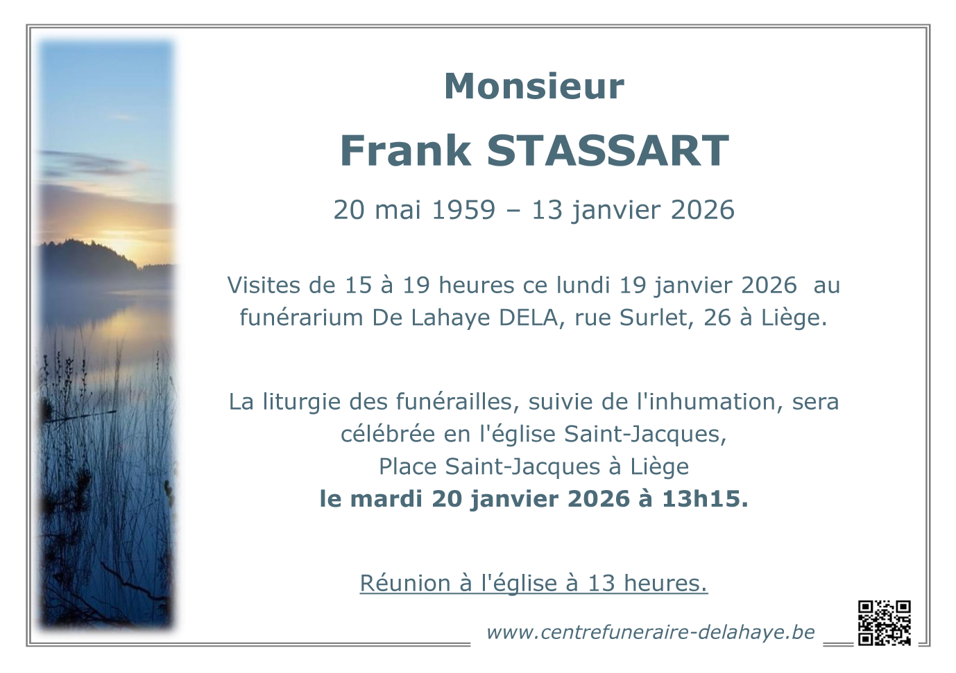 Décédé à Liège (4000, Belgique) le mardi 13 janvier 2026 à l'âge de 66 ans