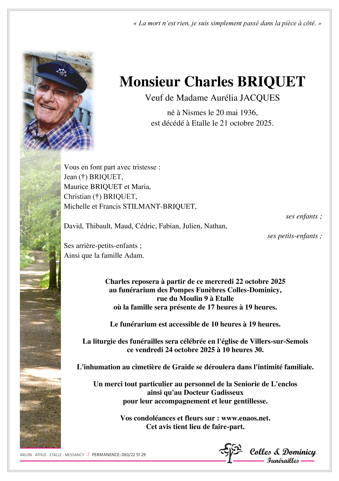 Décédé à Etalle (6740, Belgique) le mardi 21 octobre 2025 à l'âge de 89 ans