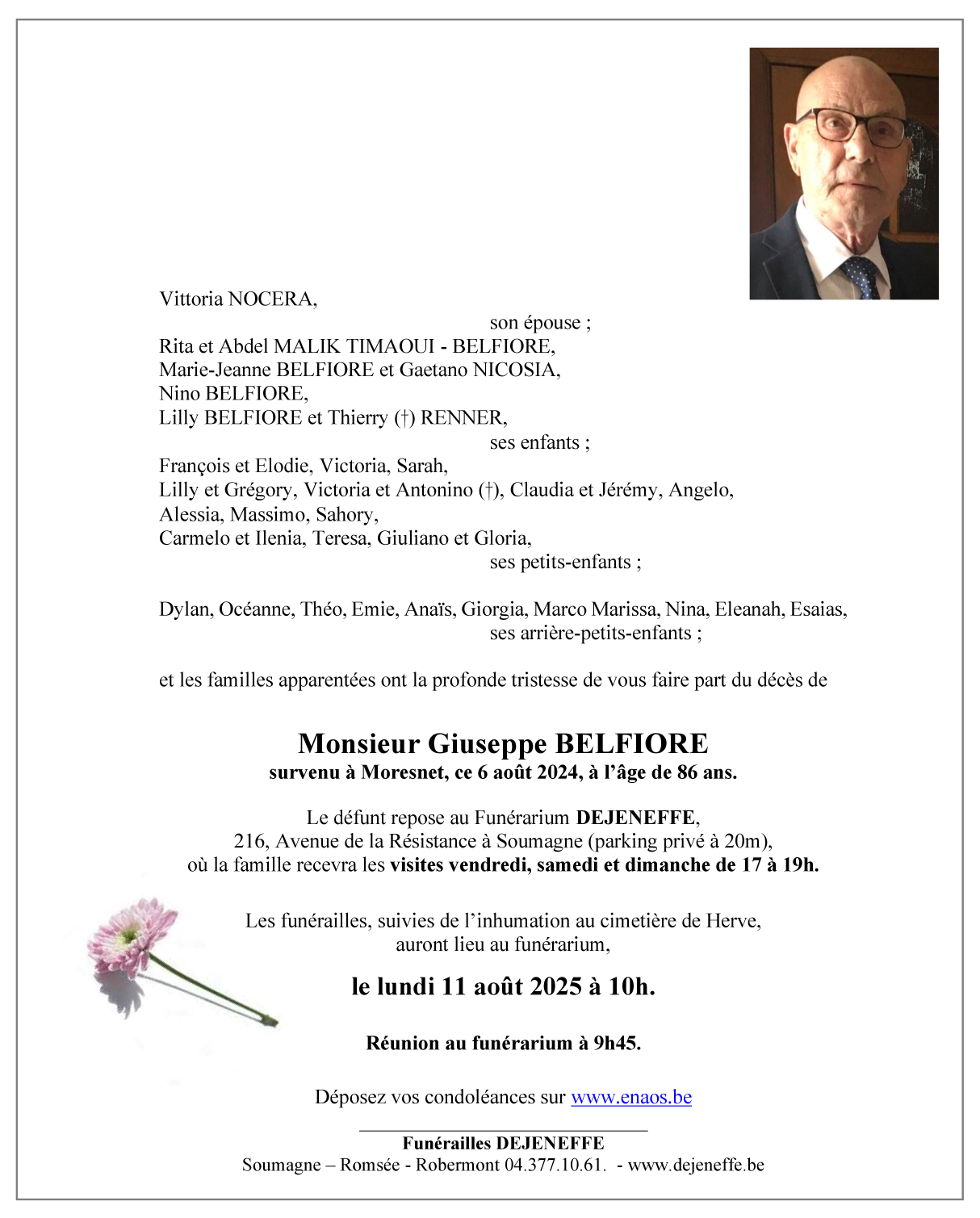 Décédé à Moresnet (4850, Belgique) le mercredi 6 août 2025 à l'âge de 86 ans