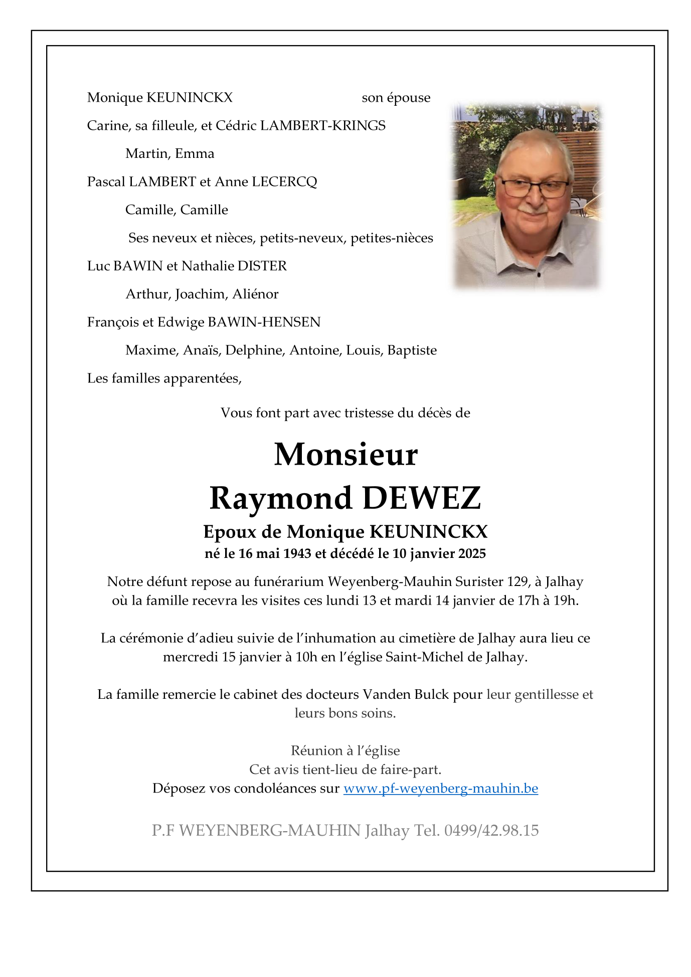 Fallecido en Verviers (4800, Bélgica) el viernes, 10 de enero de 2025 a la edad de 81 años