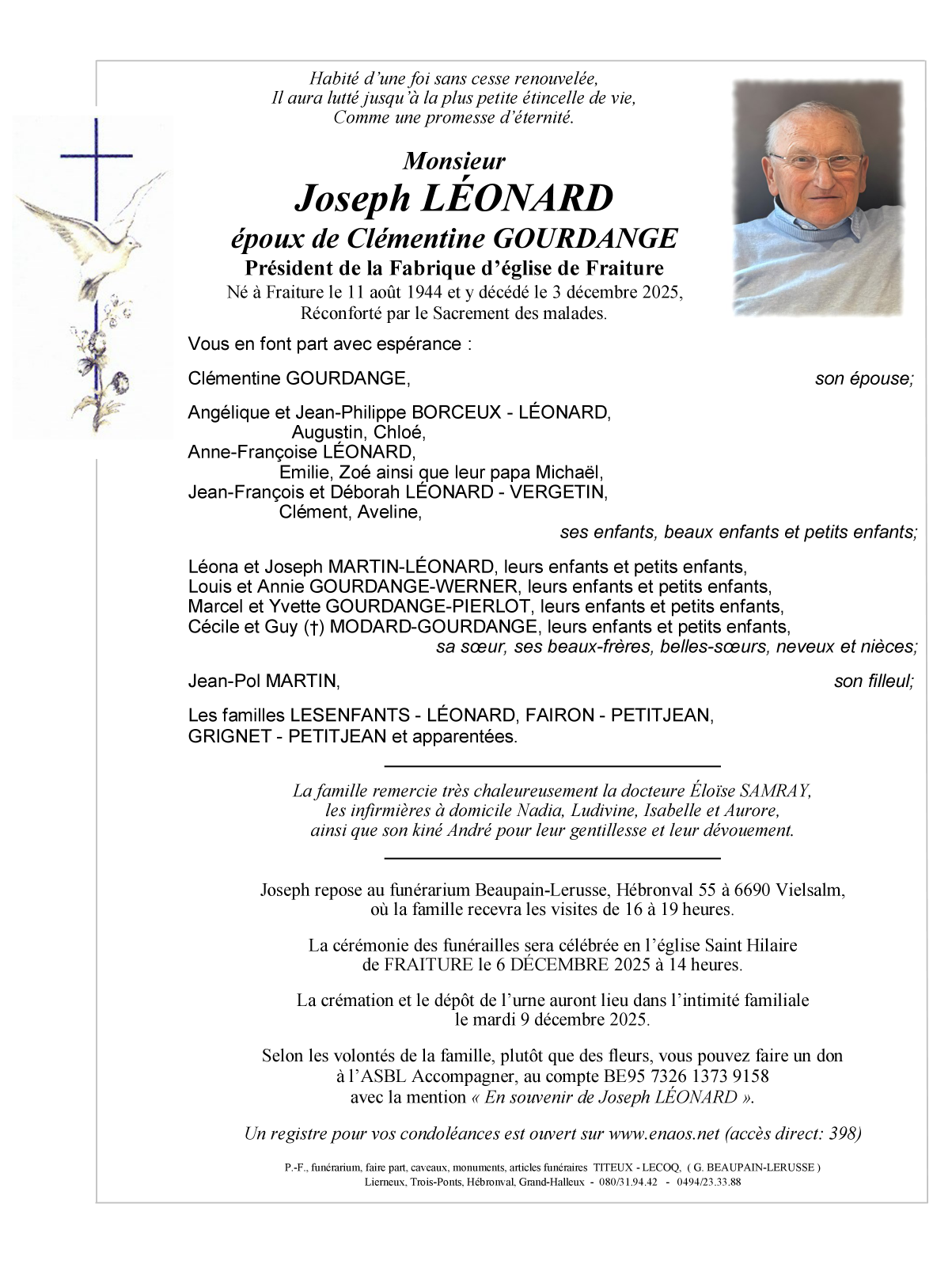 Décédé à Fraiture (6690, Belgique) le mercredi 3 décembre 2025 à l'âge de 81 ans