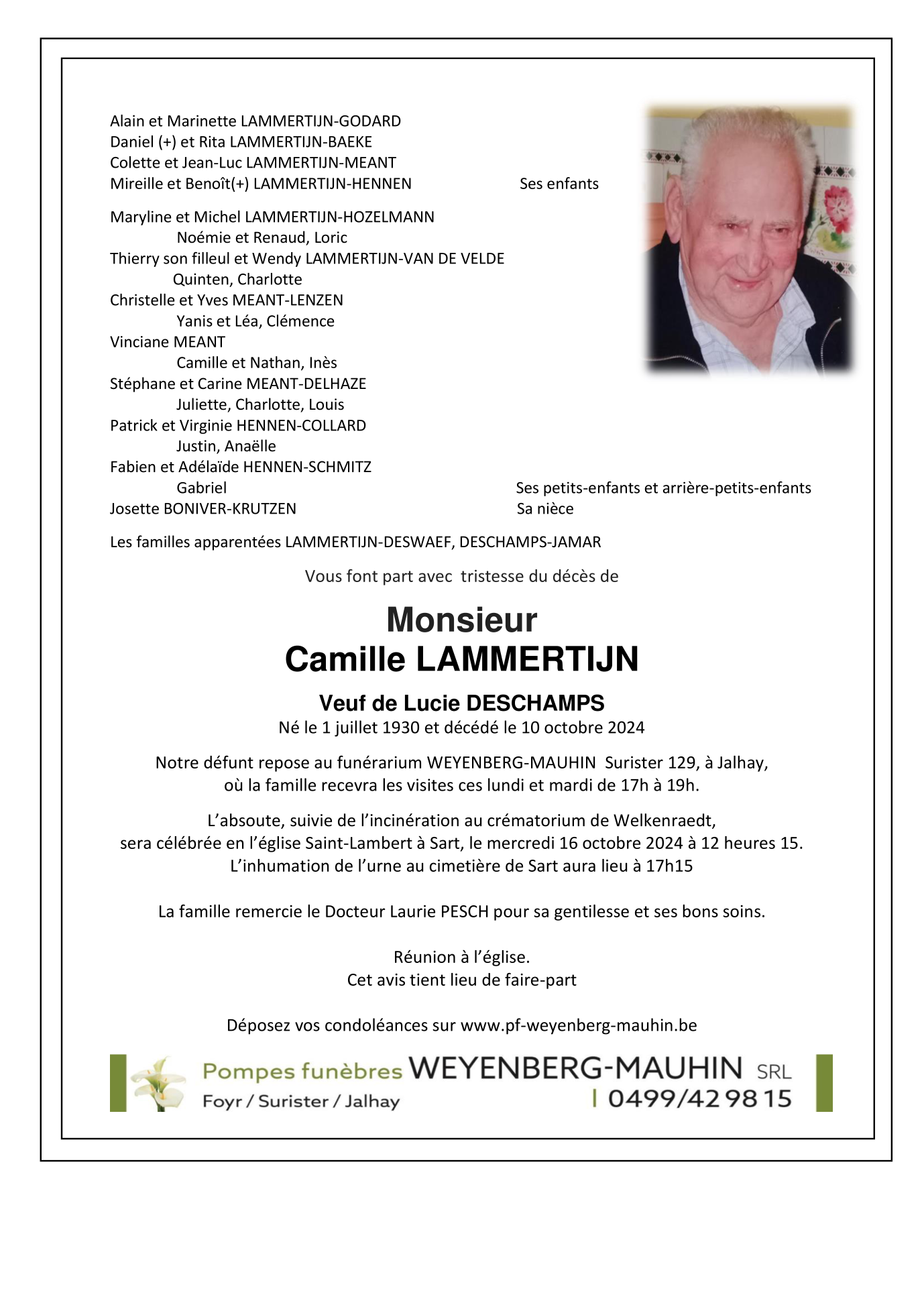 Décédé à Verviers (4800, Belgique) le jeudi 10 octobre 2024 à l'âge de 94 ans