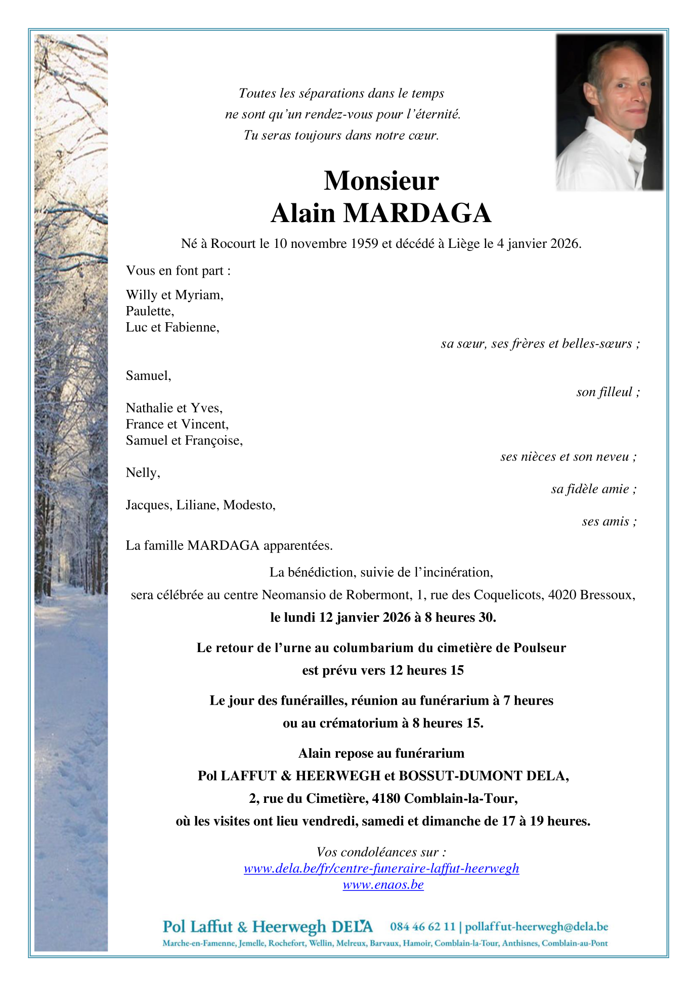 Décédé à Liège (4000, Belgique) le dimanche 4 janvier 2026 à l'âge de 66 ans