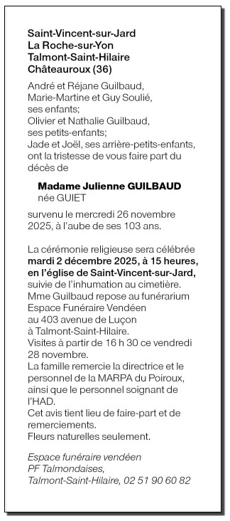 Fallecida en Poiroux (85440, Francia) el miércoles, 26 de noviembre de 2025 a la edad de 102 años