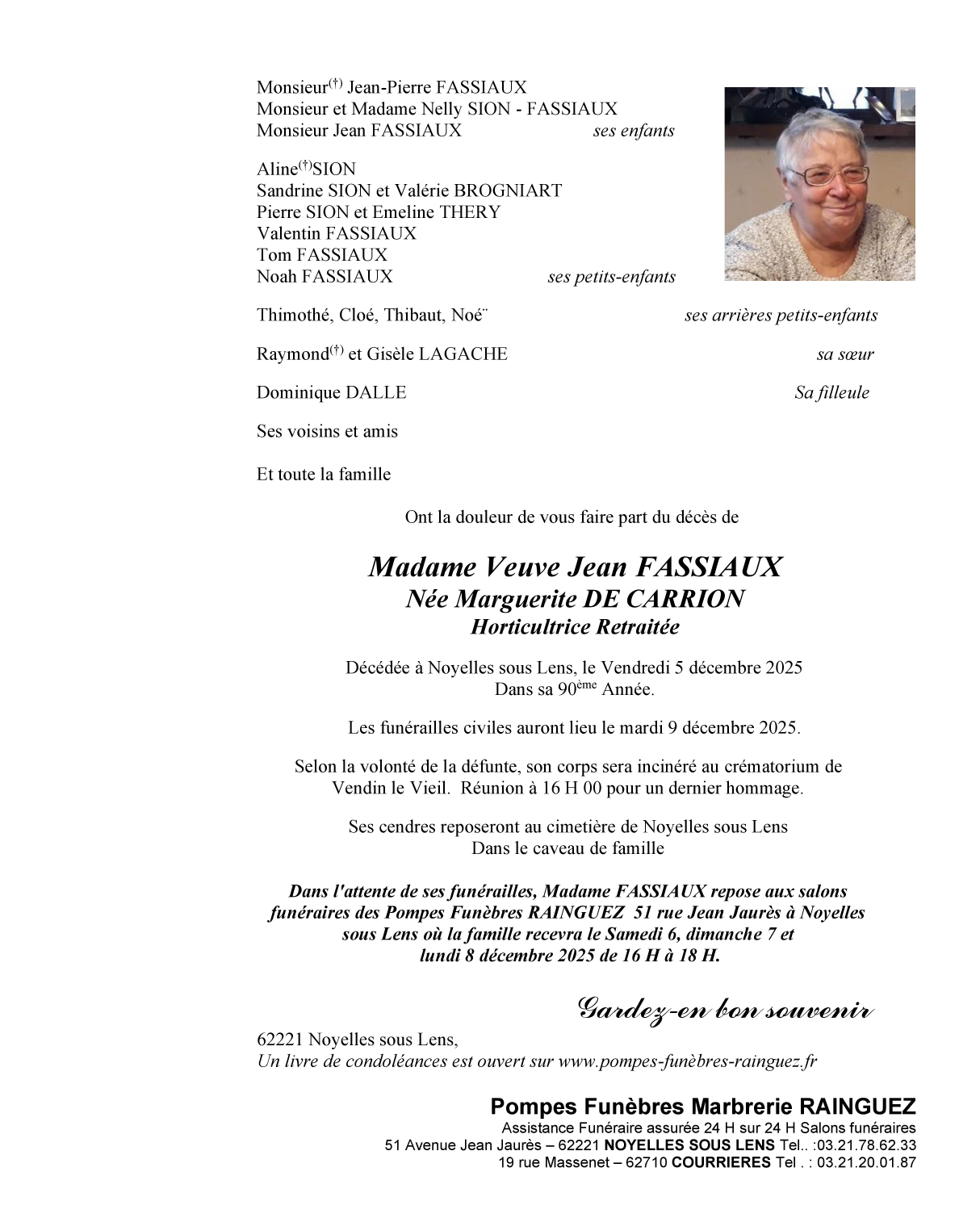 Died in Noyelles-sous-Lens (62221, France) on 05 December 2025 at the age of 89 years