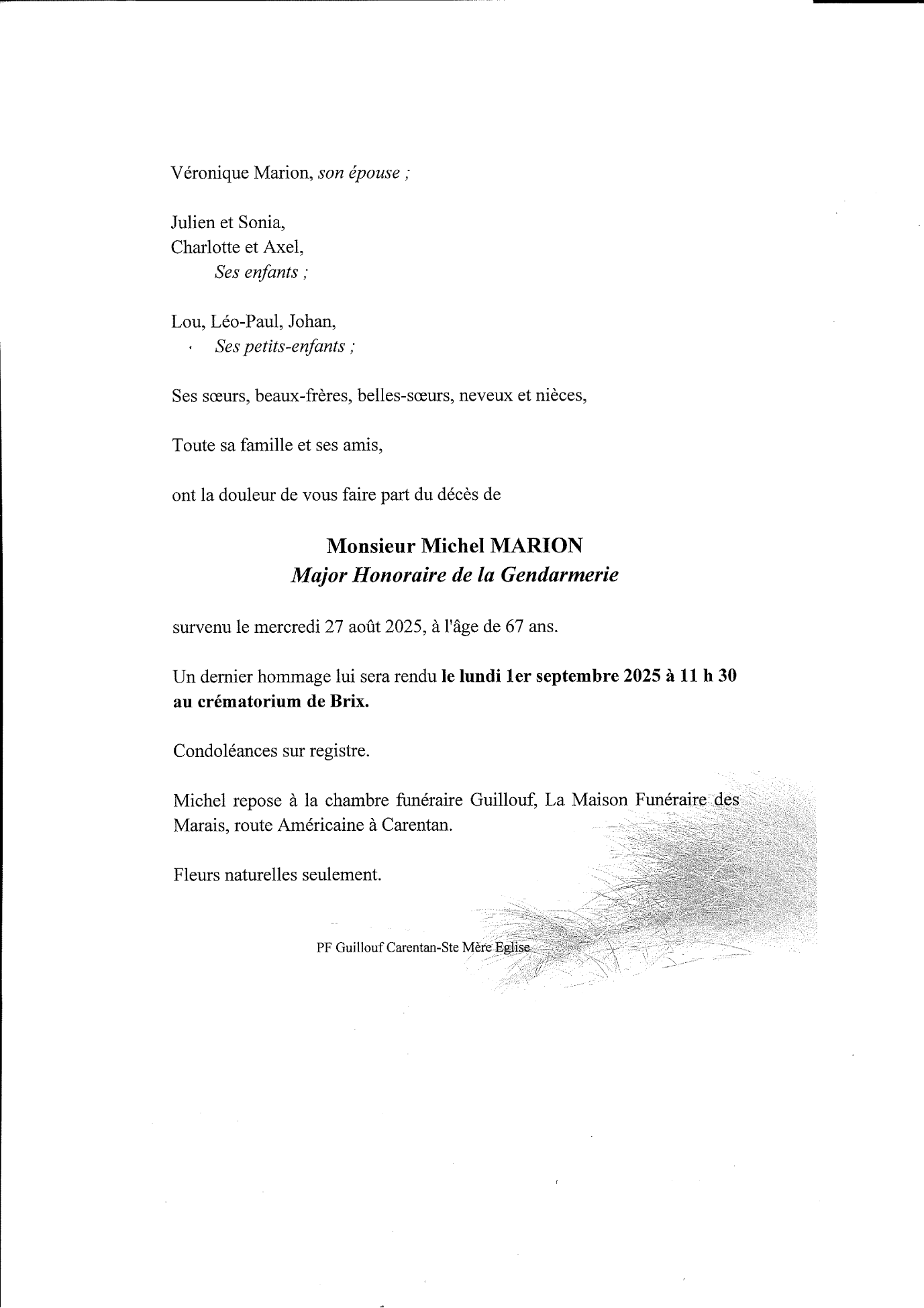 Died in Tribehou (50620, France) on 27 August 2025 at the age of 67 years