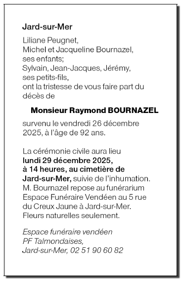 Décédé à Luçon (85400, France) le vendredi 26 décembre 2025 à l'âge de 92 ans