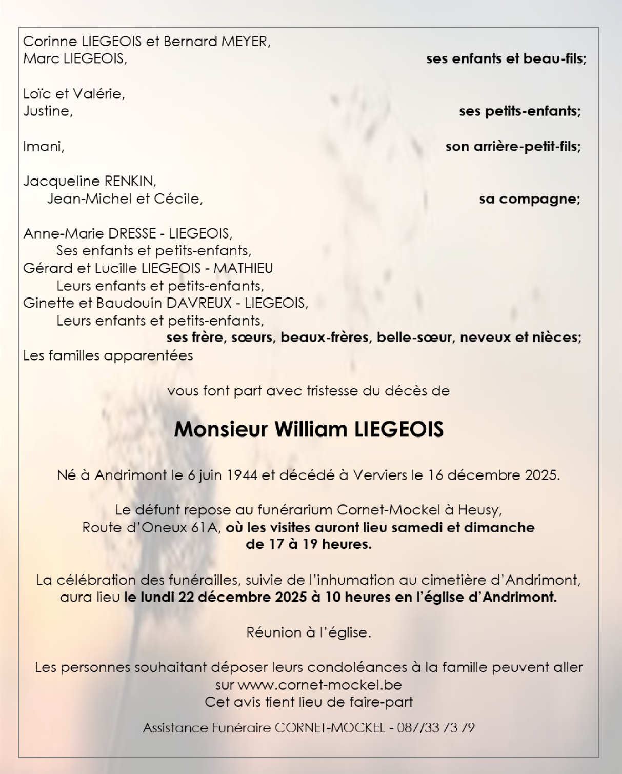 Décédé à Verviers (4800, Belgique) le mardi 16 décembre 2025 à l'âge de 81 ans