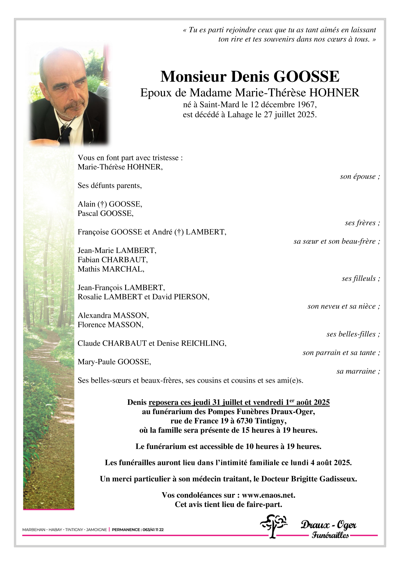 Overleden te Tintigny (6730, België) op zondag 27 juli 2025 op 57-jarige leeftijd