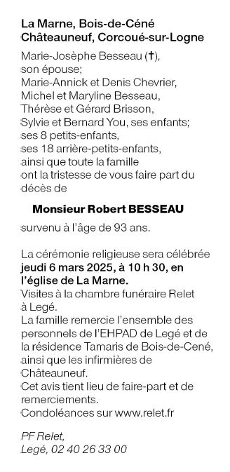 Died in Legé (44650, France) on 03 March 2025 at the age of 93 years