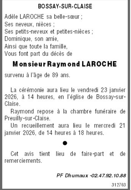 Décédé à Loches (37600, France) le vendredi 16 janvier 2026 à l'âge de 89 ans