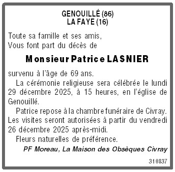 Décédé à Genouillé (86250, France) le lundi 22 décembre 2025 à l'âge de 69 ans