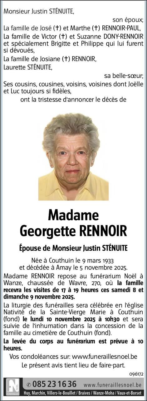 Décédée à Amay (4540, Belgique) le mercredi 5 novembre 2025 à l'âge de 92 ans