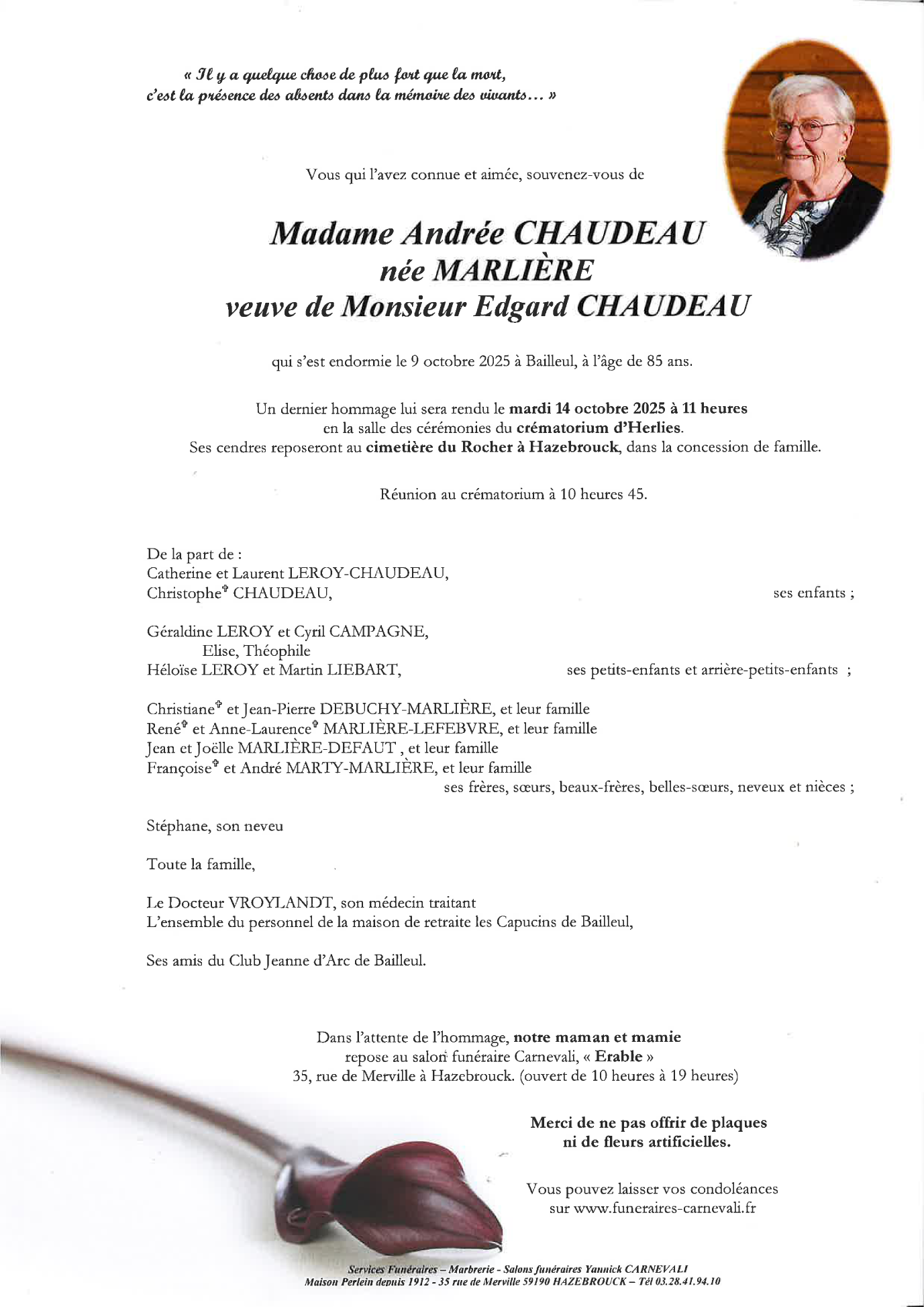 Died in Bailleul (59270, France) on 09 October 2025 at the age of 85 years
