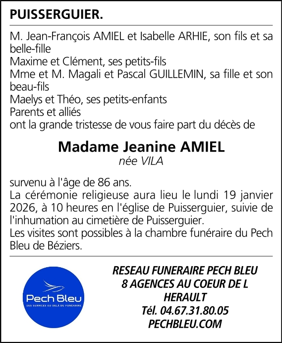 Fallecida en Béziers (34500, Francia) el miércoles, 14 de enero de 2026 a la edad de 86 años