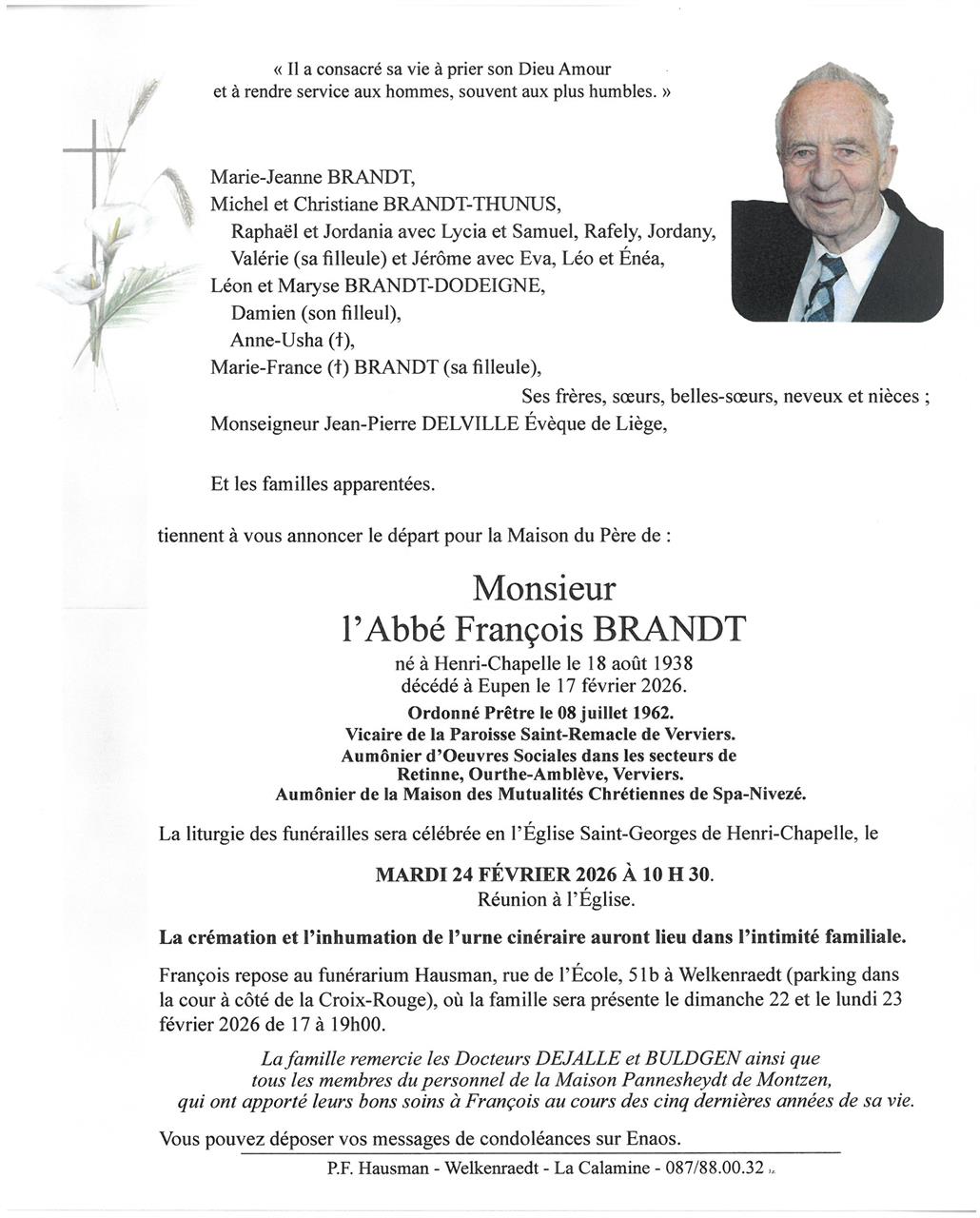 Overleden te Eupen (4700, België) op dinsdag 17 februari 2026 op 87-jarige leeftijd