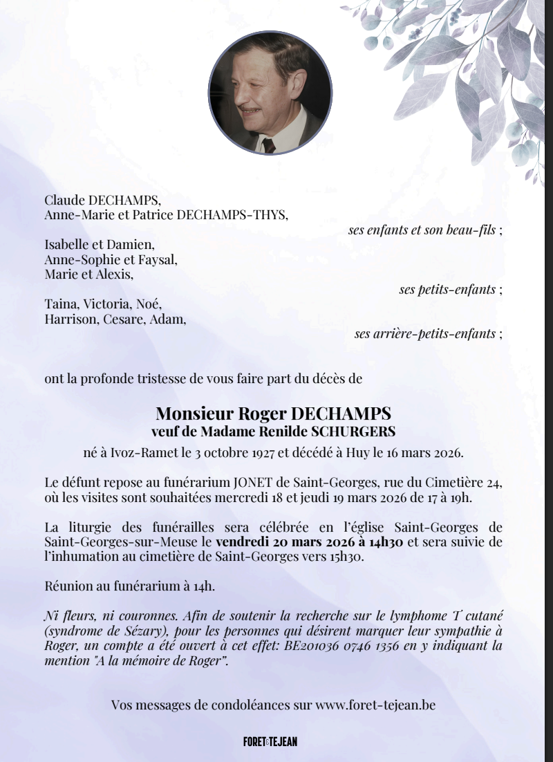 Décédé à Huy (4500, Belgique) le lundi 16 mars 2026 à l'âge de 98 ans