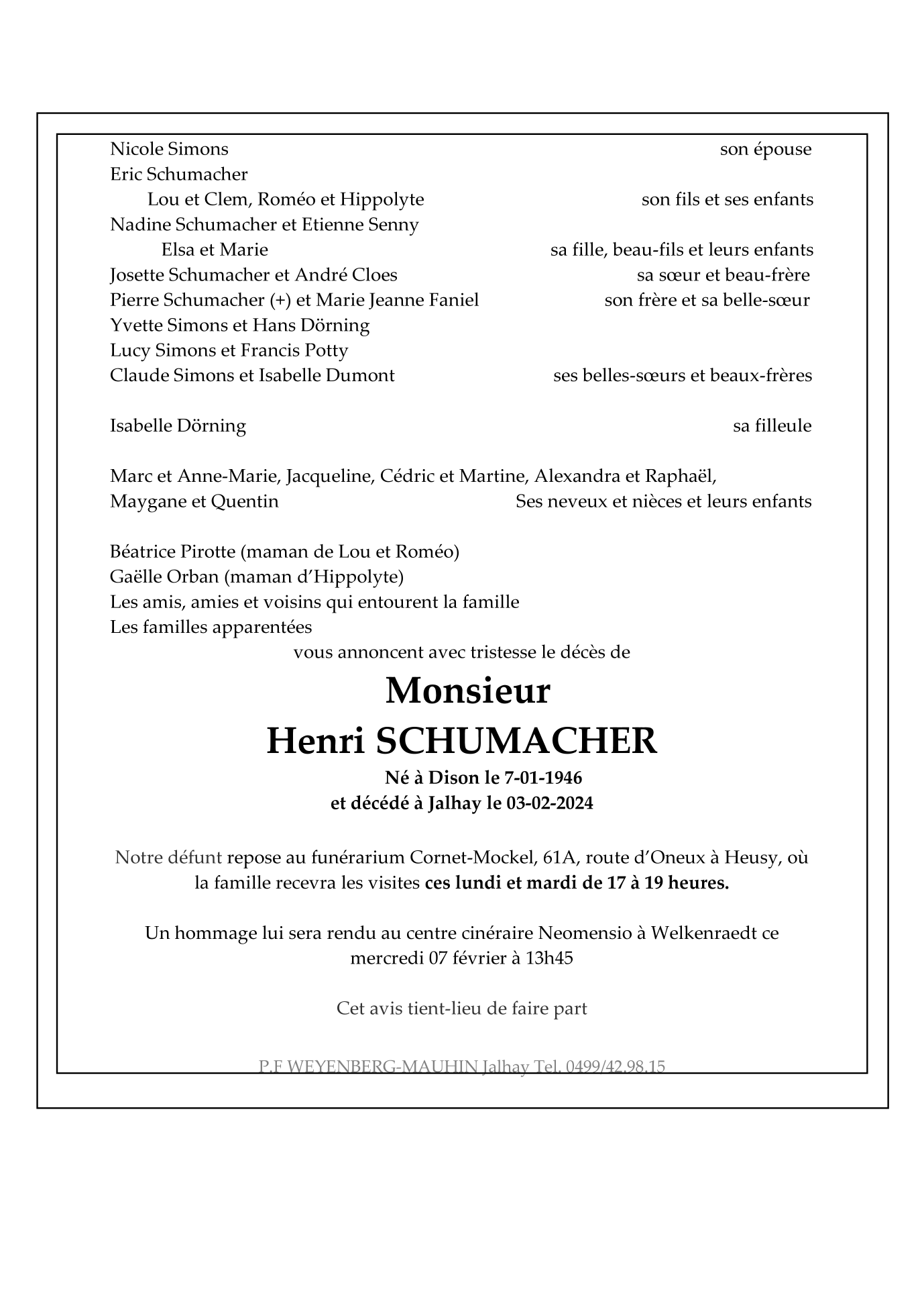 Fallecido en Jalhay (4845, Bélgica) el sábado, 3 de febrero de 2024 a la edad de 78 años