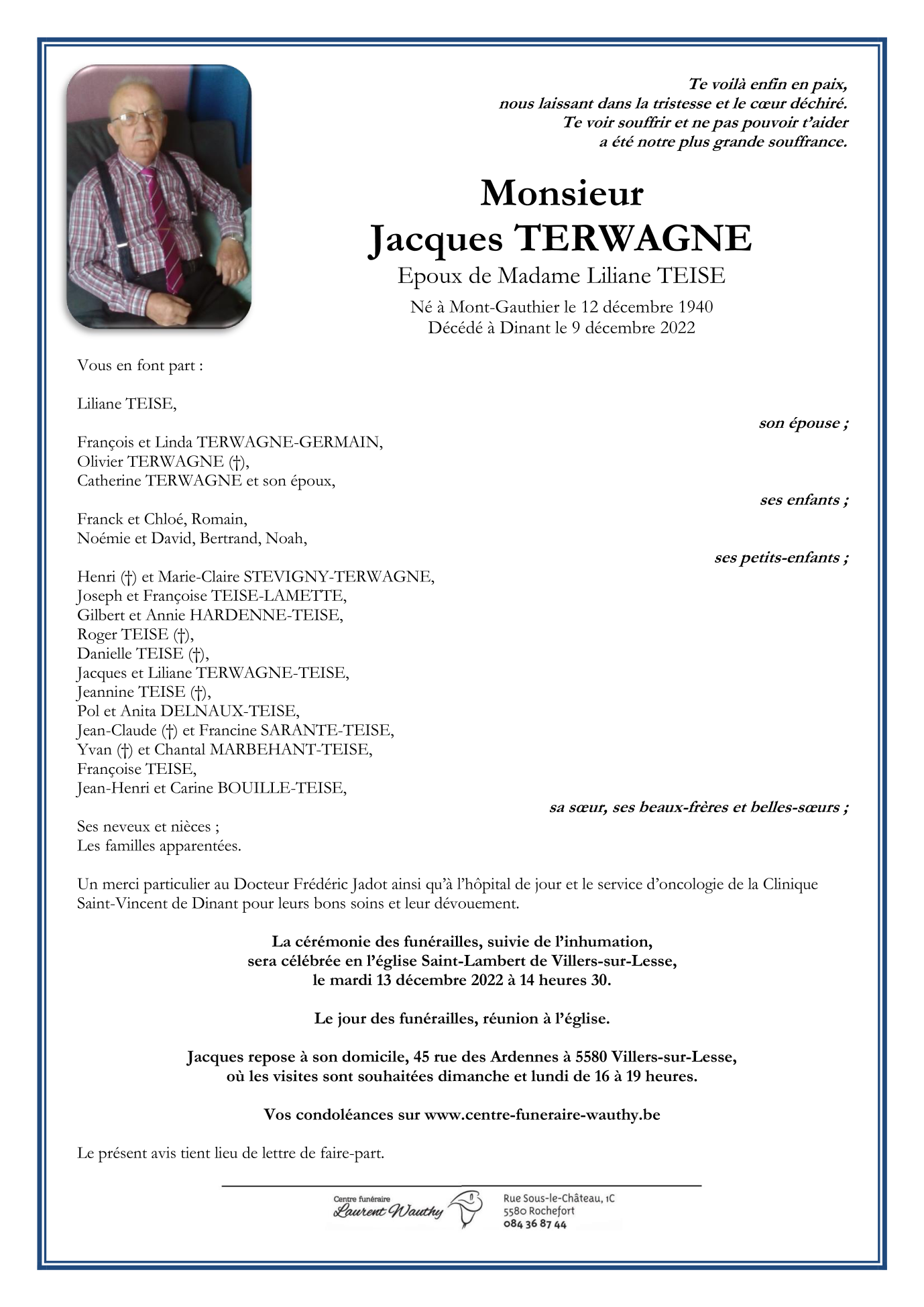 Fallecido en Dinant (5500, Bélgica) el viernes, 9 de diciembre de 2022 a la edad de 81 años