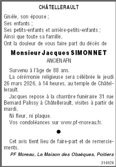 Died in Poitiers (86000, France) on 20 March 2026 at the age of 88 years