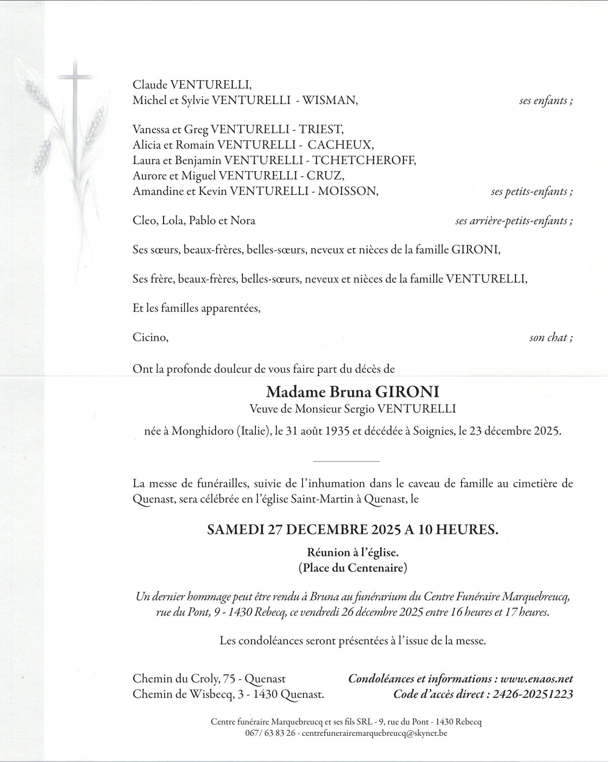 Overleden te Soignies (7060, België) op dinsdag 23 december 2025 op 90-jarige leeftijd