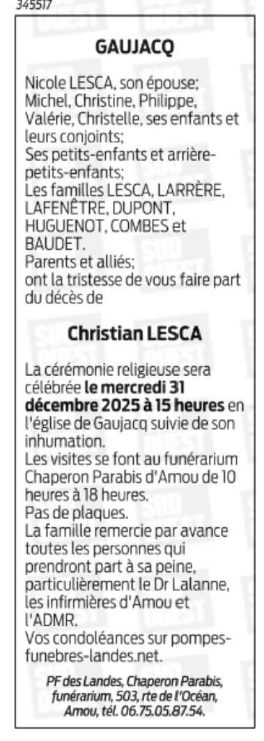 Geboren te Saint-Cricq-Chalosse (40700, Frankrijk) op zondag 25 februari 1940