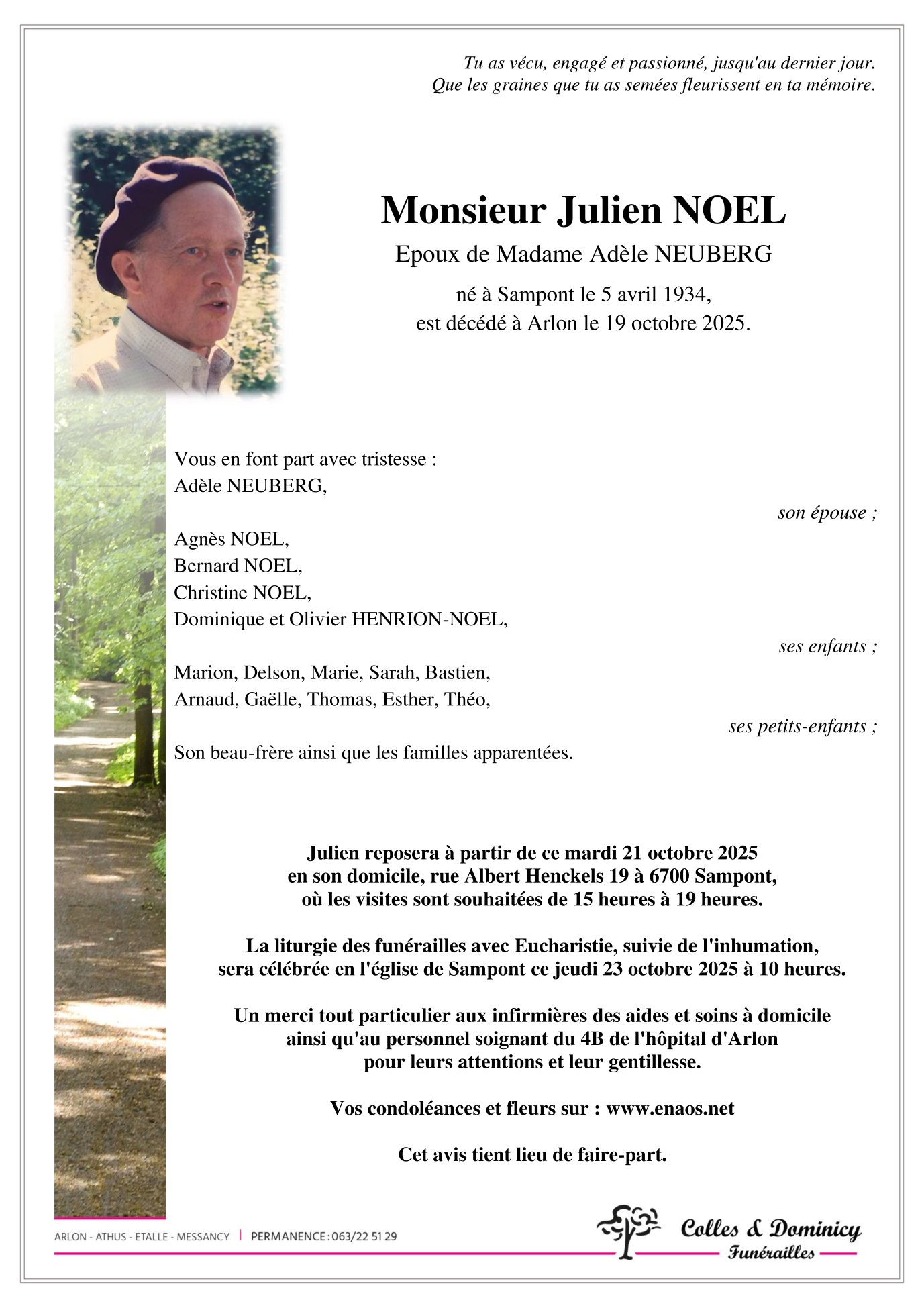 Décédé à Arlon (6700, Belgique) le dimanche 19 octobre 2025 à l'âge de 91 ans