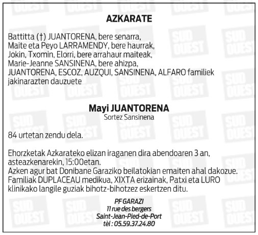 Décédée à Ispoure (64220, France) le dimanche 30 novembre 2025 à l'âge de 84 ans