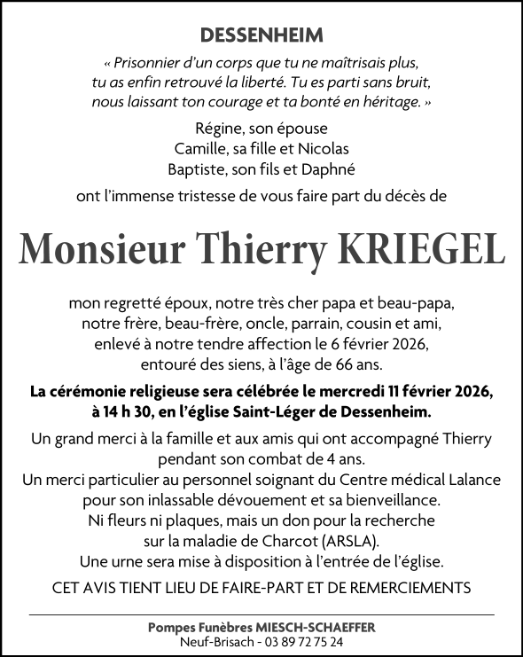 Fallecido en Lutterbach (68460, Francia) el viernes, 6 de febrero de 2026 a la edad de 66 años