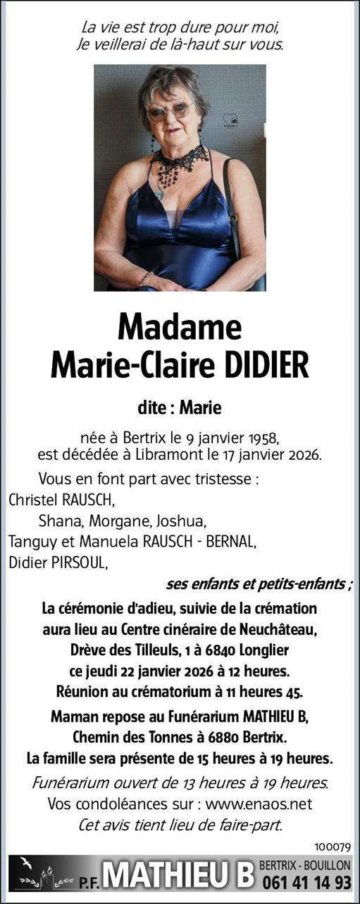 Madame Marie-Claire DIDIER (dite Marie)