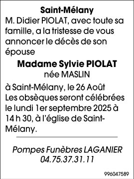 Décédée à Saint-Mélany (07260, France) le mardi 26 août 2025 à l'âge de 67 ans
