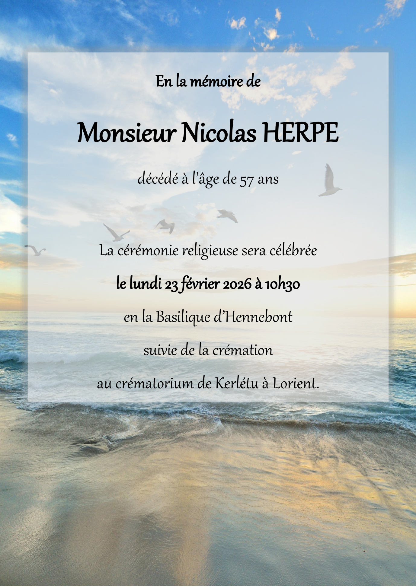 Died in Hennebont (56700, France) on 17 February 2026 at the age of 57 years