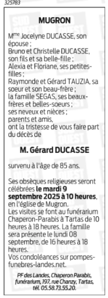Fallecido en Dax (40100, Francia) el viernes, 5 de septiembre de 2025 a la edad de 85 años