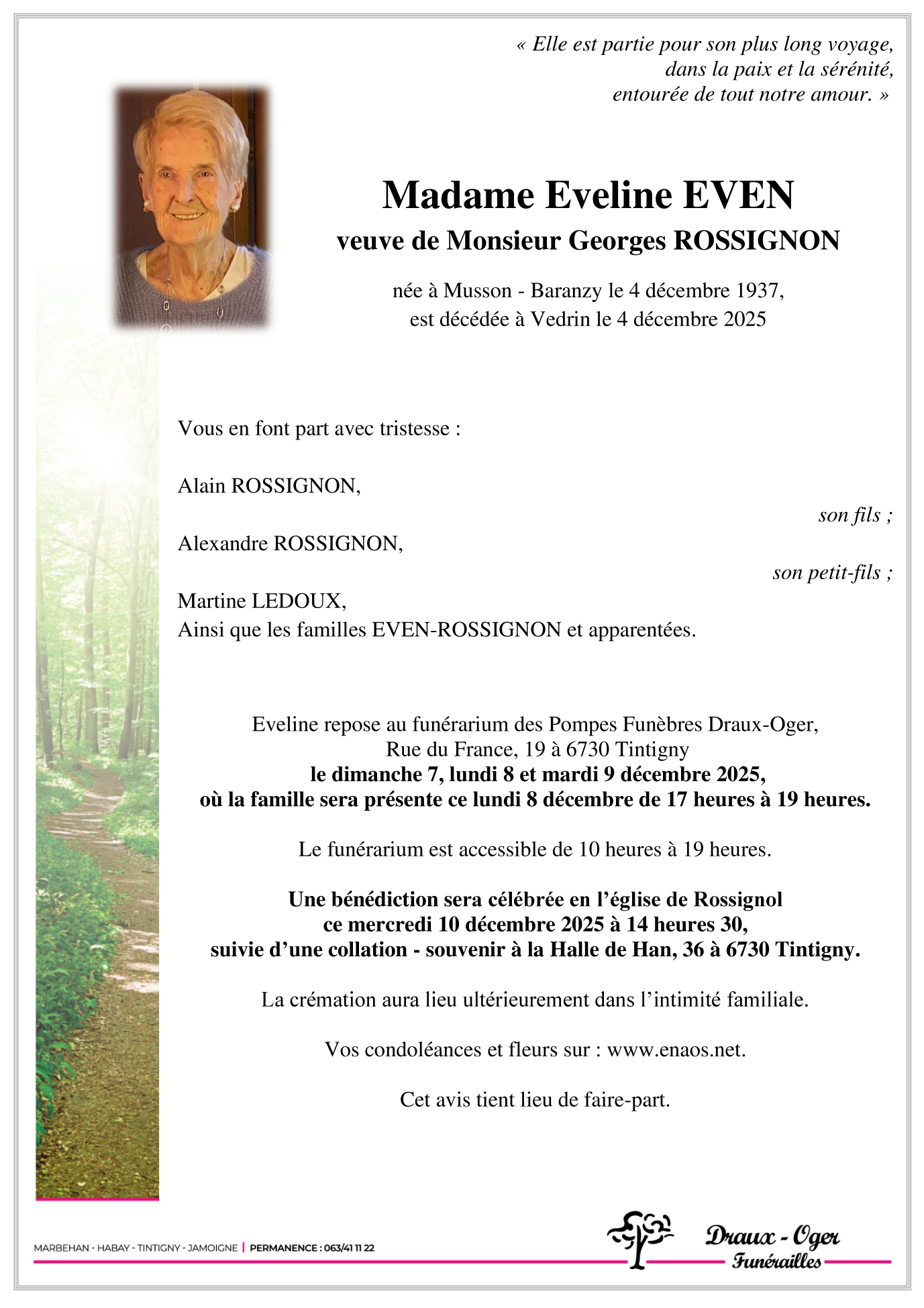 Fallecida en Vedrin (5020, Bélgica) el jueves, 4 de diciembre de 2025 a la edad de 88 años