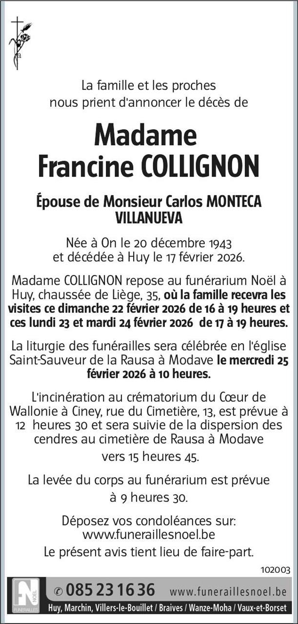 Décédée à Huy (4500, Belgique) le mardi 17 février 2026 à l'âge de 82 ans