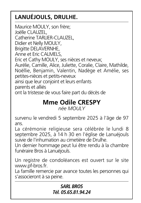 Overleden te Villefranche-de-Rouergue (12200, Frankrijk) op vrijdag 5 september 2025 op 97-jarige leeftijd