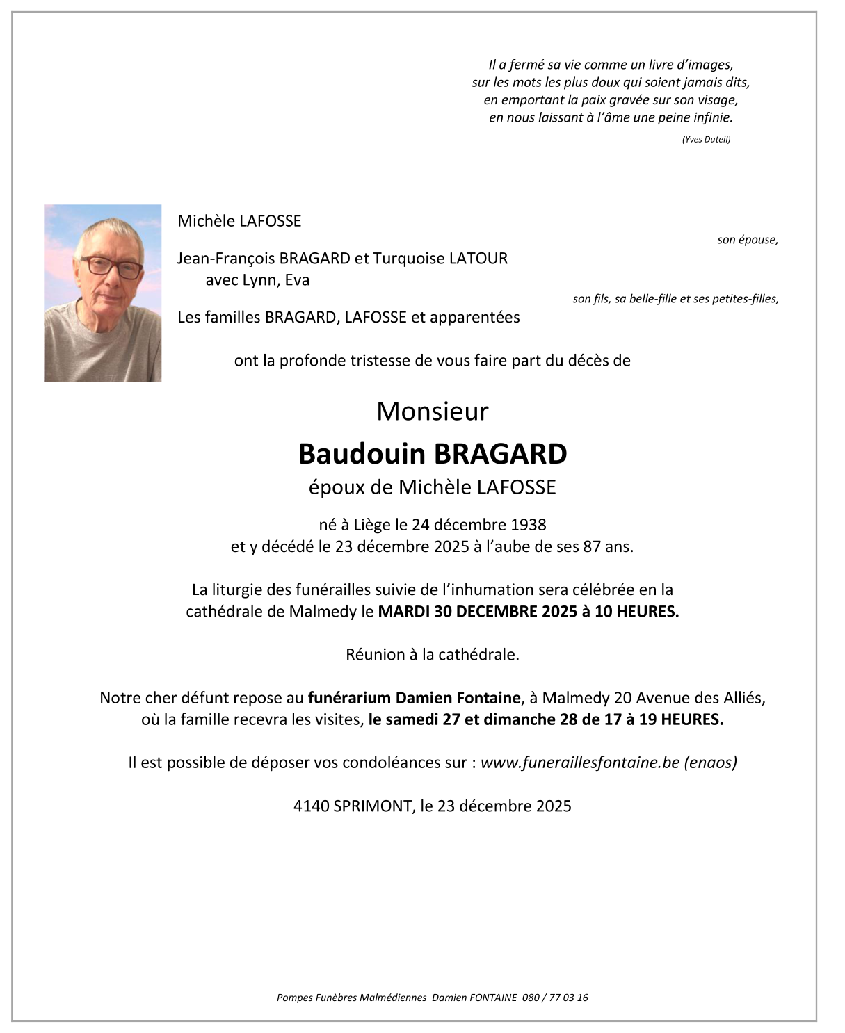 Overleden te Liège (4000, België) op dinsdag 23 december 2025 op 86-jarige leeftijd